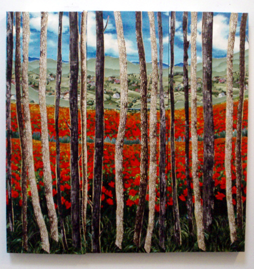 Poppy FieldsFabric collage on canvas 30"x 30", 2009