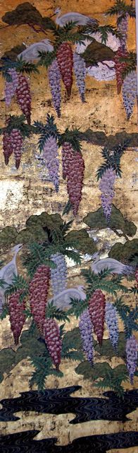 Wisteria And CranesFabric collage, Gold Leaf on canvas 72" x 18", 2009