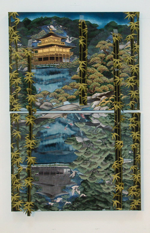 Kinkakuji And CranesFabric Collage48" x 24", 2006