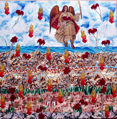 San Miguel De Las Flores Y Fuego Fabric Collage on MDF 36" x 36", 2007