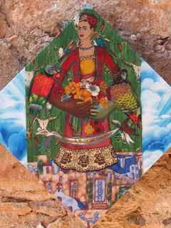 Frida Abrazos Del Universo Fabric Collage on MDF 18" X 18", 2009