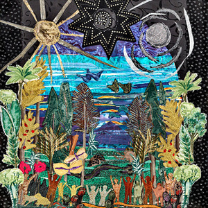 Faith Quilt Project - Sixth Day Square Fabric Collage 18" x 18", 2006
