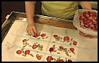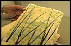 6. Transfer or "couch" the pulp to a wet cloth. Remove excess water with a sponge (figure D).