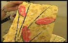 9. Spray Plexiglas or windowpanes with water and transfer the wet sheets onto the surface (figure H). Let dry.